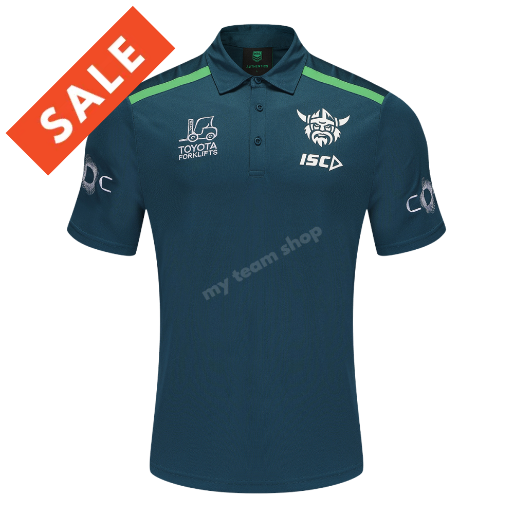 Canberra Raiders 2025 Polo shirt has a clean and contemporary look which showcases the Raiders colour Jungle with hints of Green.
