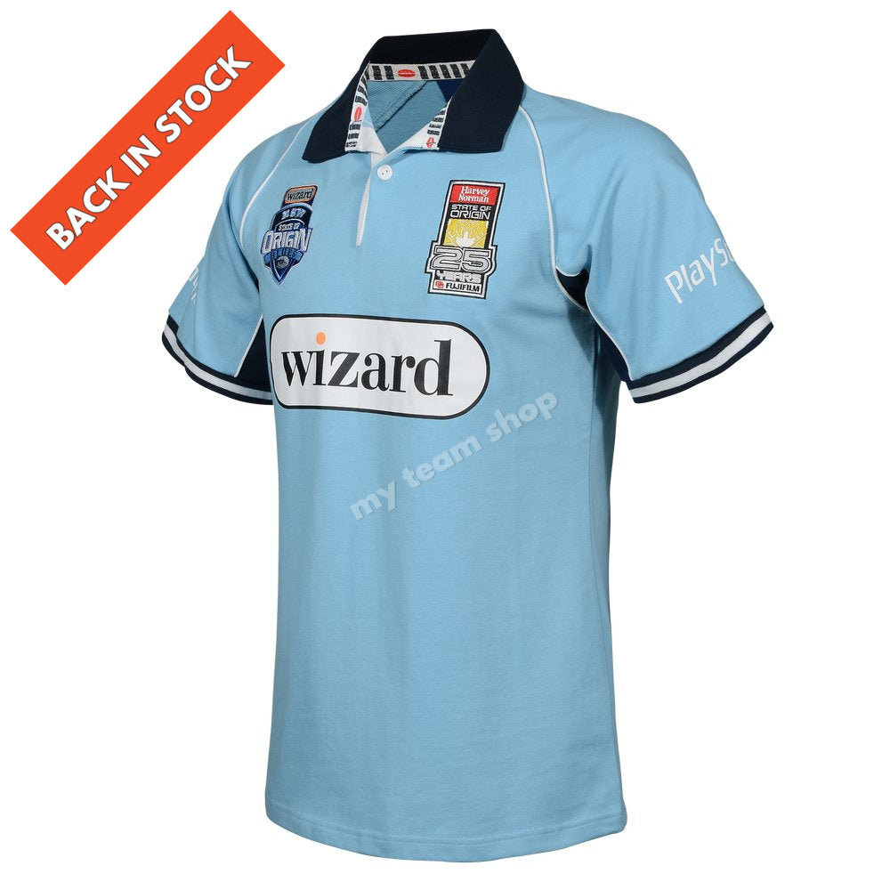 Celebrate the glory of the NSW Blues' triumphant State of Origin victory with the 2005 NSW Retro Jersey. This authentic replica brings back the magic of that unforgettable year. The iconic sky blue design, adorned with the Blues emblem, takes you back to the electric atmosphere of the stadium. Whether you wear it to the game, proudly display it as a cherished piece of history, or simply bask in nostalgia, this jersey lets you relive the excitement of the 2005 State of Origin series. Join the passionate Blues' fanbase and wear the NSW Blues State of Origin 2005 Retro Jersey now!